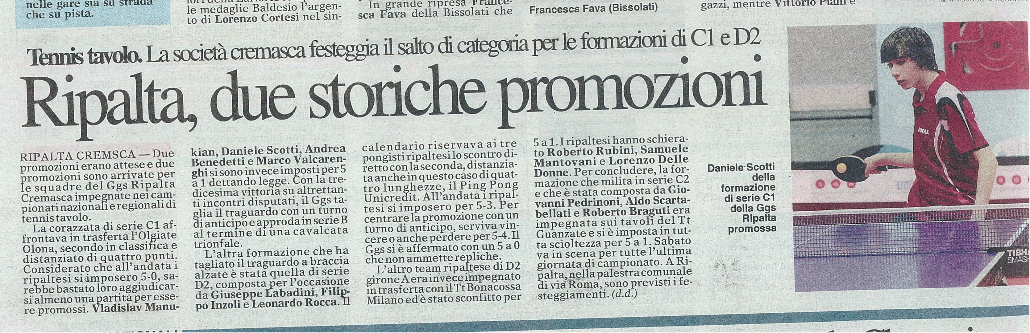 Ripalta due storiche promozioni.