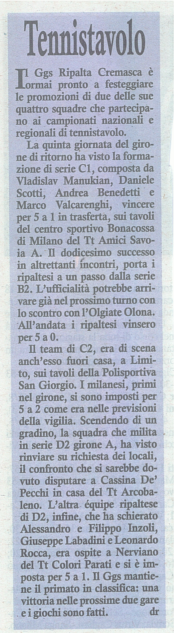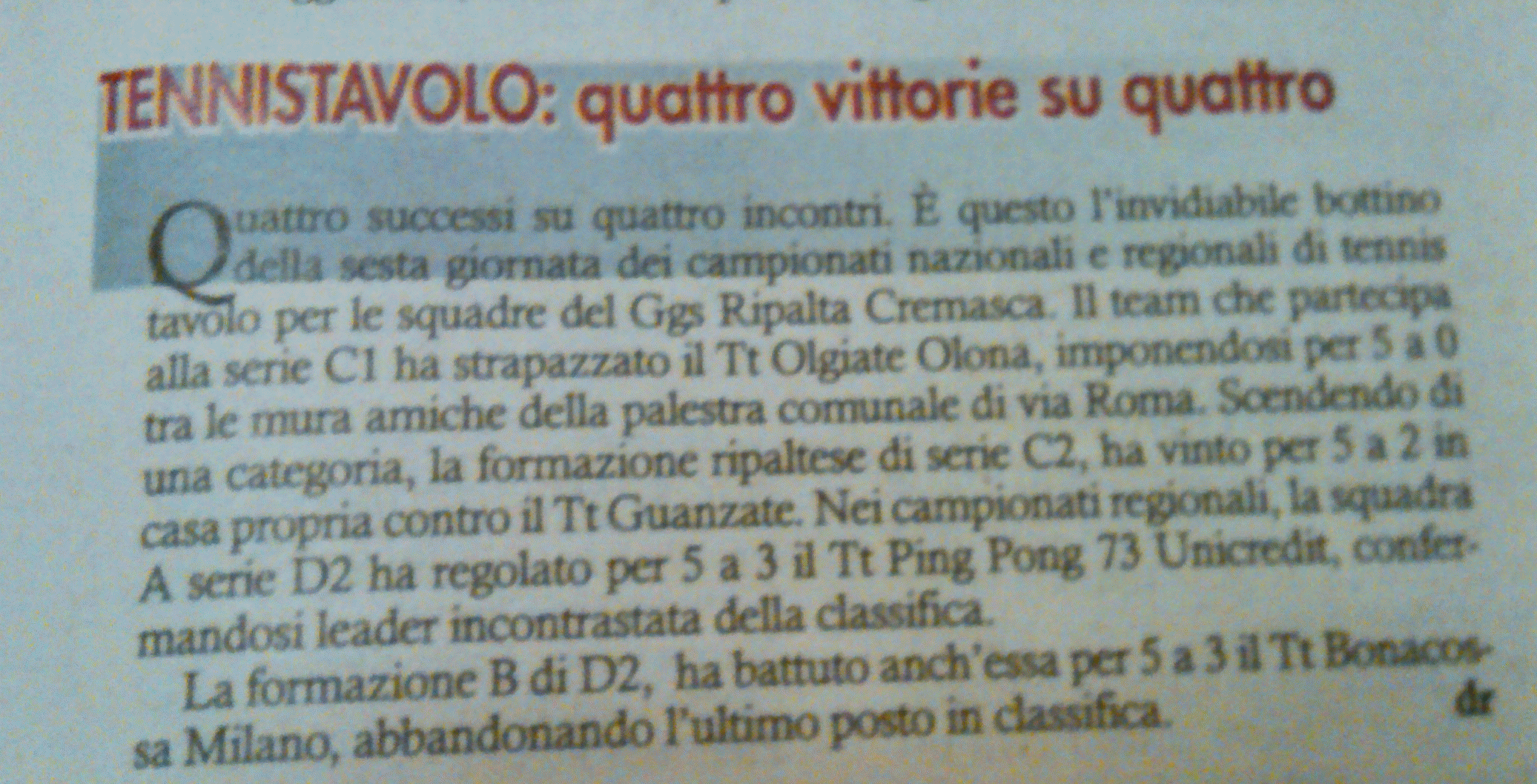 Tennis tavolo, GGS Ripalta Cremasca.